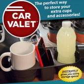 Органайзер Car Valet легко садится между вашим сиденьем и вашей консолью, обеспечивая ваш автомобиль двумя очень большими подстаканниками, оснащенными кружками, с пространством для шнуров, телефонов, зарядных устройств и других аксессуаров, не занимая ценное место.